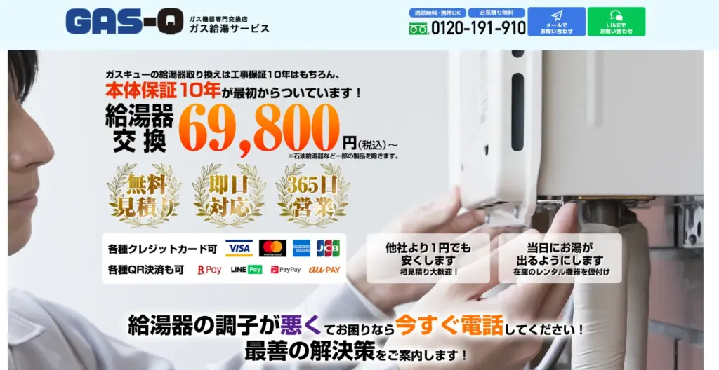 給湯器専門業者×10年保証が 最速・最安・高保証 でベストです。
