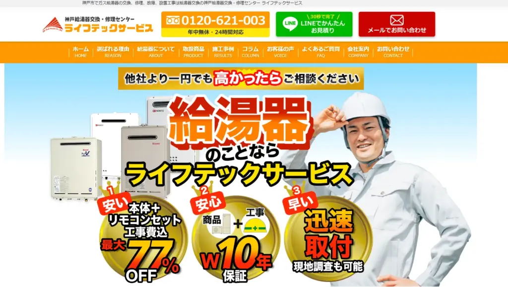給湯器専門業者×10年保証が 最速・最安・高保証 でベストです。