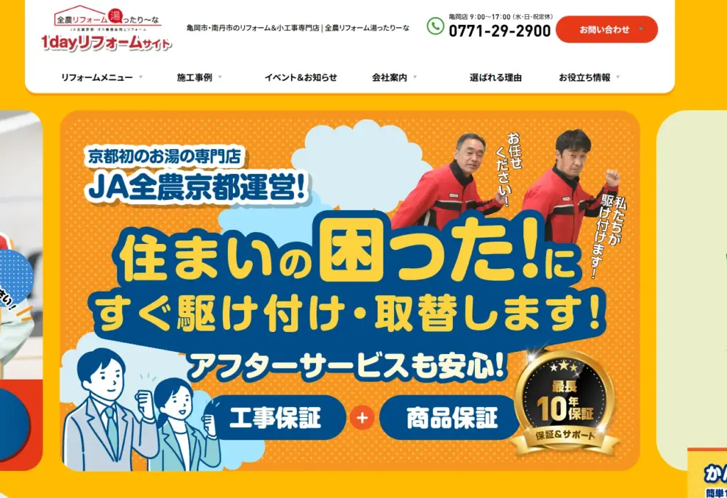 商品と工事の両方に無料の10年保証がついているため、万が一のトラブル時も安心です。