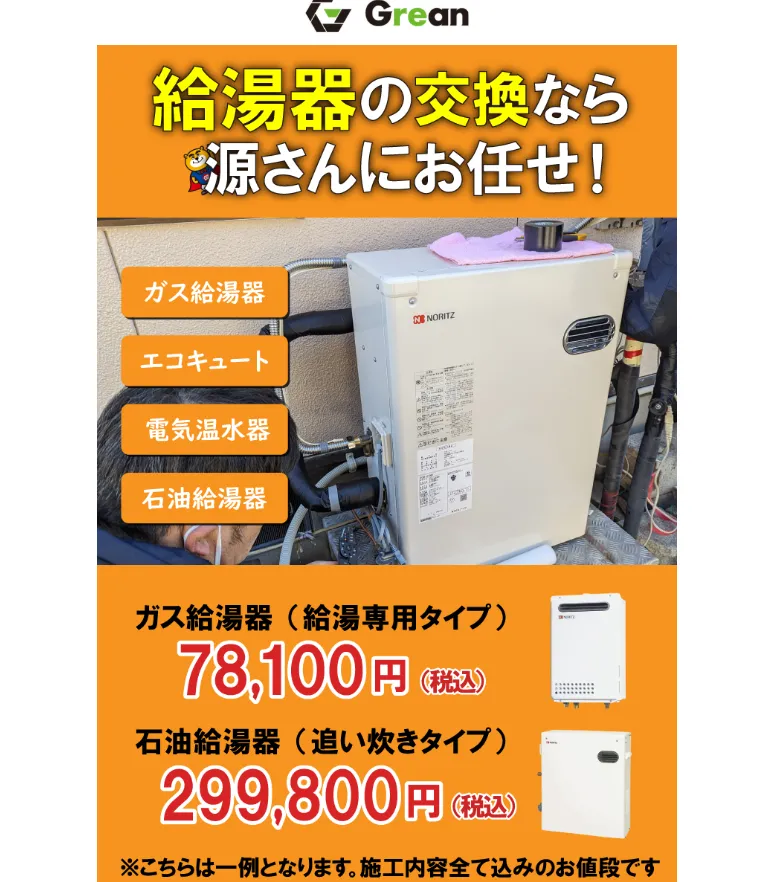 ・給湯器主流メーカー8社の商品を取り扱い。80%オフの機種も