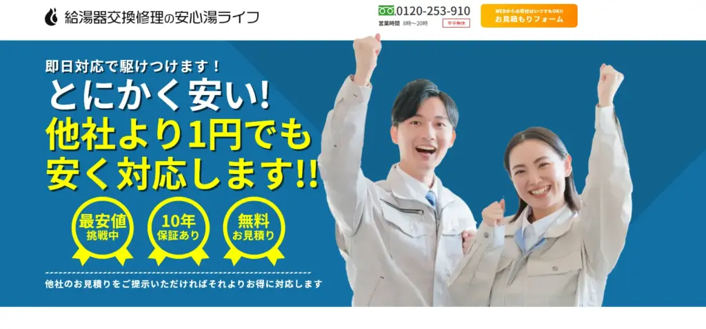 給湯器専門業者×10年保証が 最速・最安・高保証 でベストです。